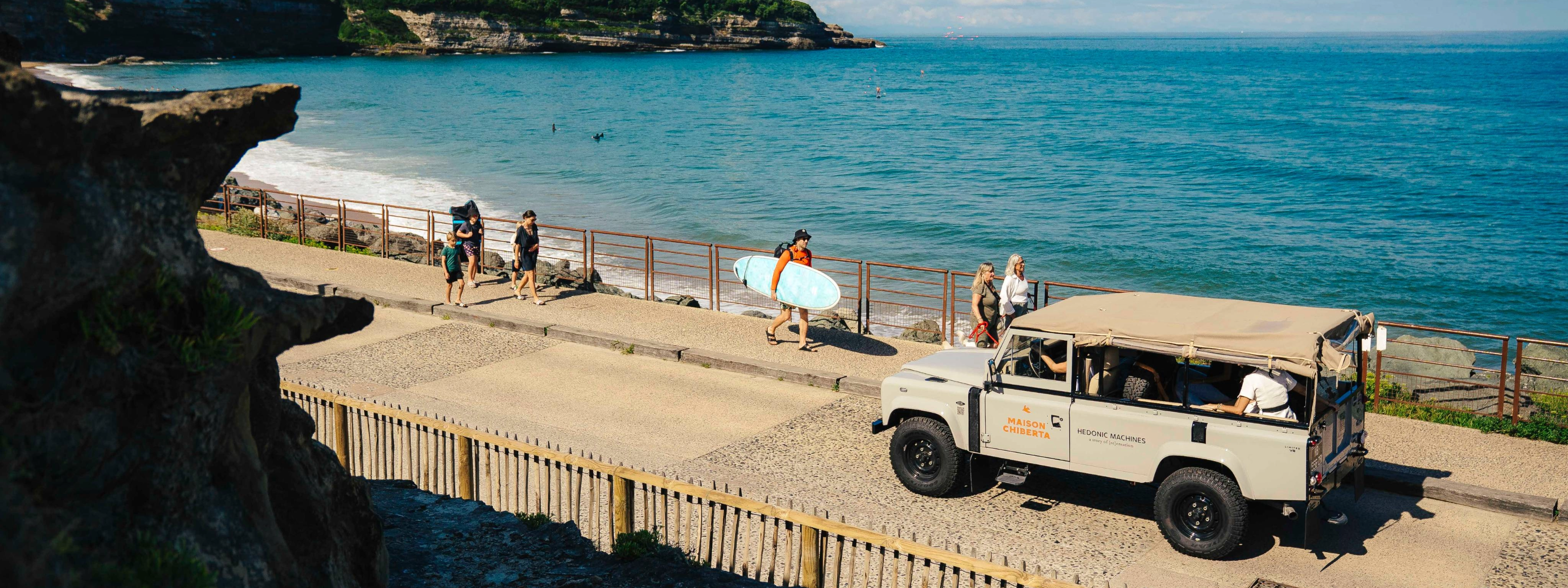 Pour célébrer son ouverture estivale, Maison Chiberta s’associe à Hedonic Machines, maison de luxe française spécialisée dans la réinterprétation d’objets iconiques. Ensemble, nous proposons une expérience de mobilité exclusive aux hôtes VIP : un emblématique Defender V8, réimaginé par Hedonic, sera mis à disposition tout l’été pour assurer les transferts privés entre Anglet, Biarritz et les environs.