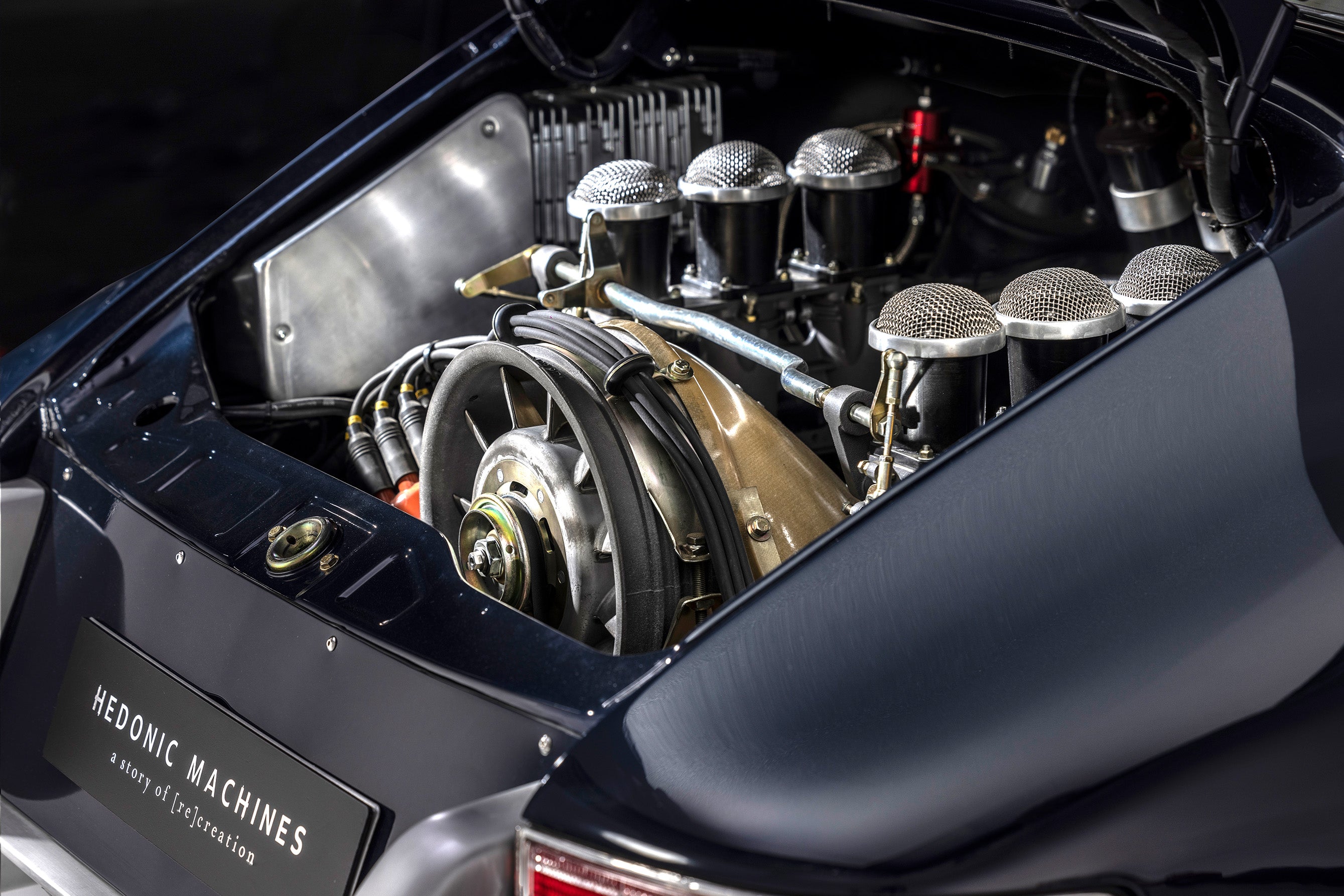 Une fois la coque traitée et les alignements faits, la ligne complète de la voiture est retravaillée grâce à un élargissement des quatre ailes, une refonte complète des pare-chocs avant et arrière, des bas de caisses et de nombreuses autres pièces telles que l’aileron, le diffuseur ou encore l’arceau. Toutes ces modifications sont faites exclusivement avec des pièces en aluminium formées à la main. De l'orfèvrerie.
