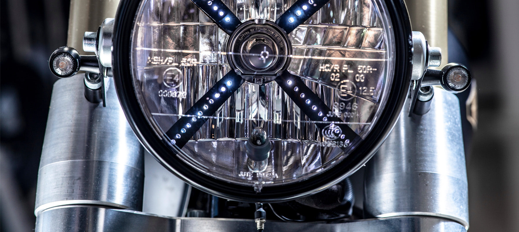 Dans le cadre de notre concept de [re]creation, nous réinventons à partir de véhicules neufs de nombreux éléments techniques, produits grâce à des savoir-faire manuels, qui rendent nos motos absolument uniques.