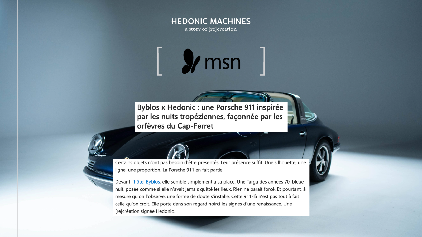« Oubliez le "backdating", avec Hedonic Machines place au "futur staging": l'art ou la manière de personnaliser une voiture d'époque pour en faire un objet unique et emprun d'une technologie futuriste »